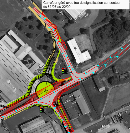 Une nouvelle phase de travaux sera ensuite engagée le 22 septembre (date susceptible de varier) : la circulation sera mise en place sur l’anneau du giratoire afin d’achever l’aménagement de l’ilot central et des abords du carrefour. La chaussée sera provisoire pendant l’exécution de ces travaux de finition.