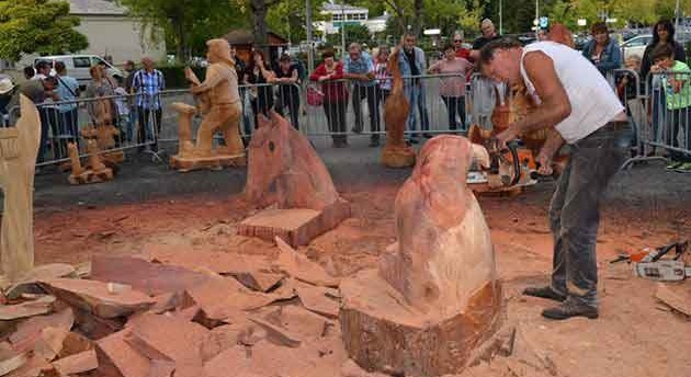- un sculpteur à la tronçonneuse Patrick VAN INGEN qui modèlera des troncs jusqu'à l'obtention d'objets, d'animaux ou bien des personnages,