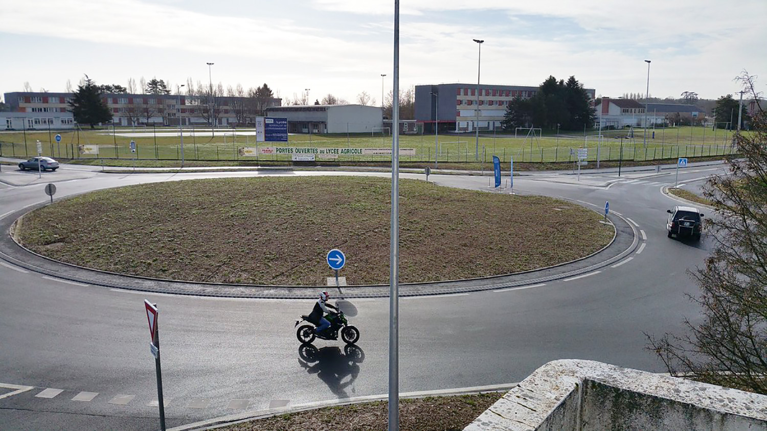 Ce giratoire facilite aussi la traversée des piétons. Les aménagements effectués permettent le cheminement jusqu'au lycée agricole. Ces derniers ont fait l'objet d'une concertation avec le lycée agricole, la ville de Châteauroux et l'Agglomération qui a accompagné le projet en modifiant le circuit des bus prolongé jusqu'au lycée agricole.
